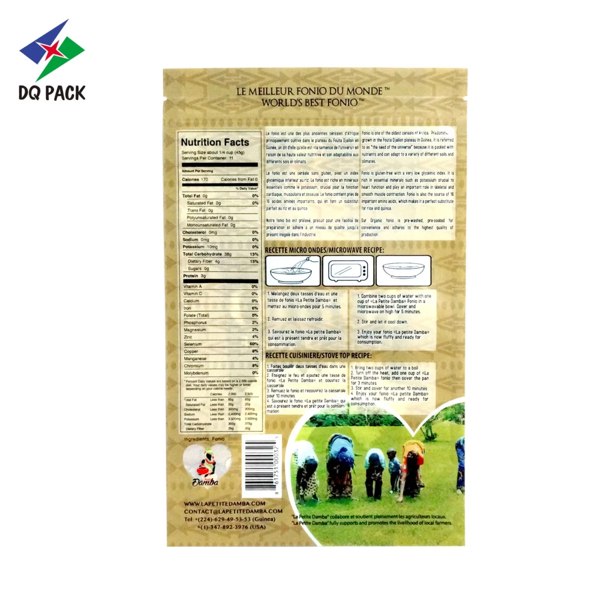 Custom Cereal Packaging Bags Supplier, Stand Up Zipper Pouch For Fonio 500g Food Grade