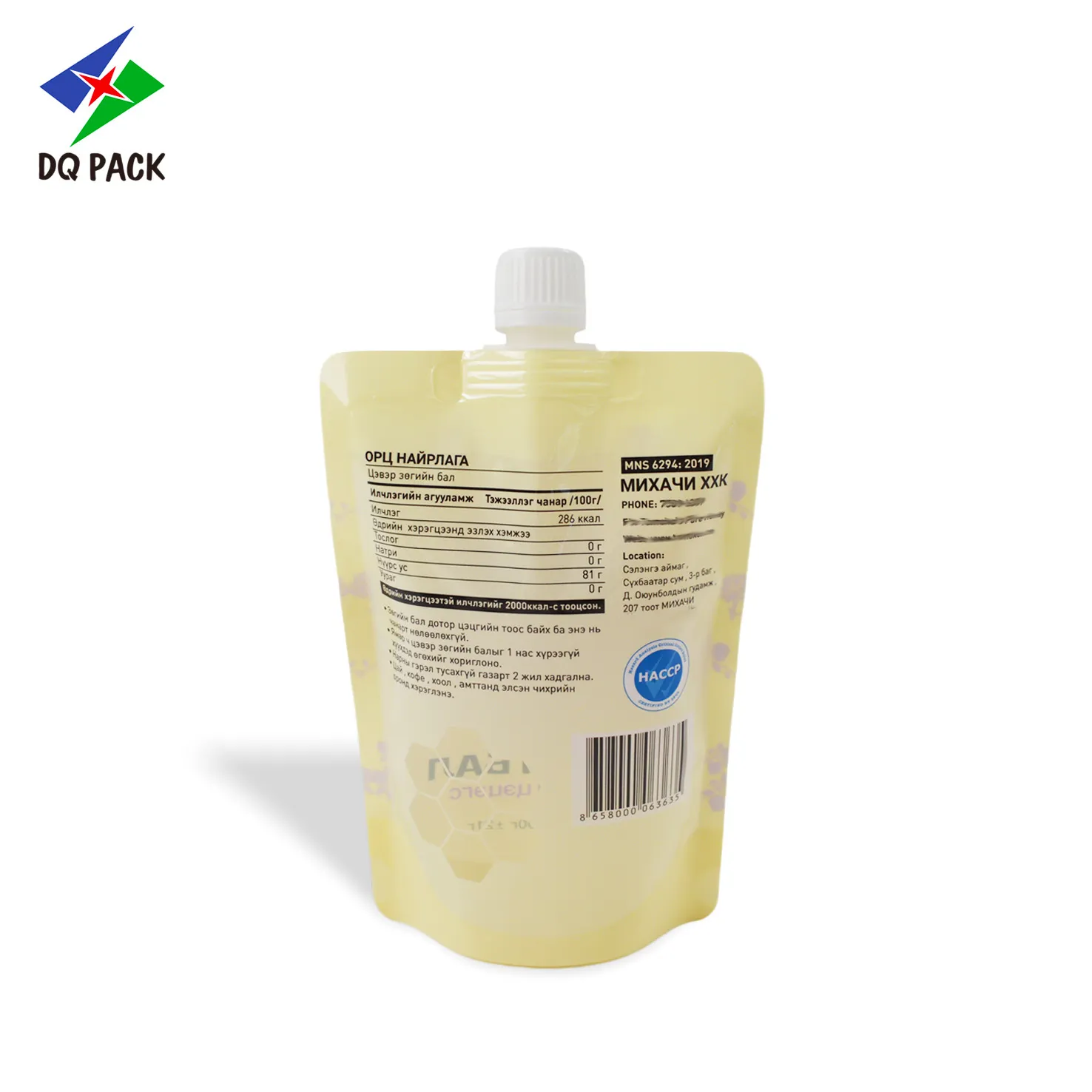 Custom Printed Honey Spout Pouch Food Safe Plastic Bag Leak-proof Design | Resealable Liquid Food Packaging