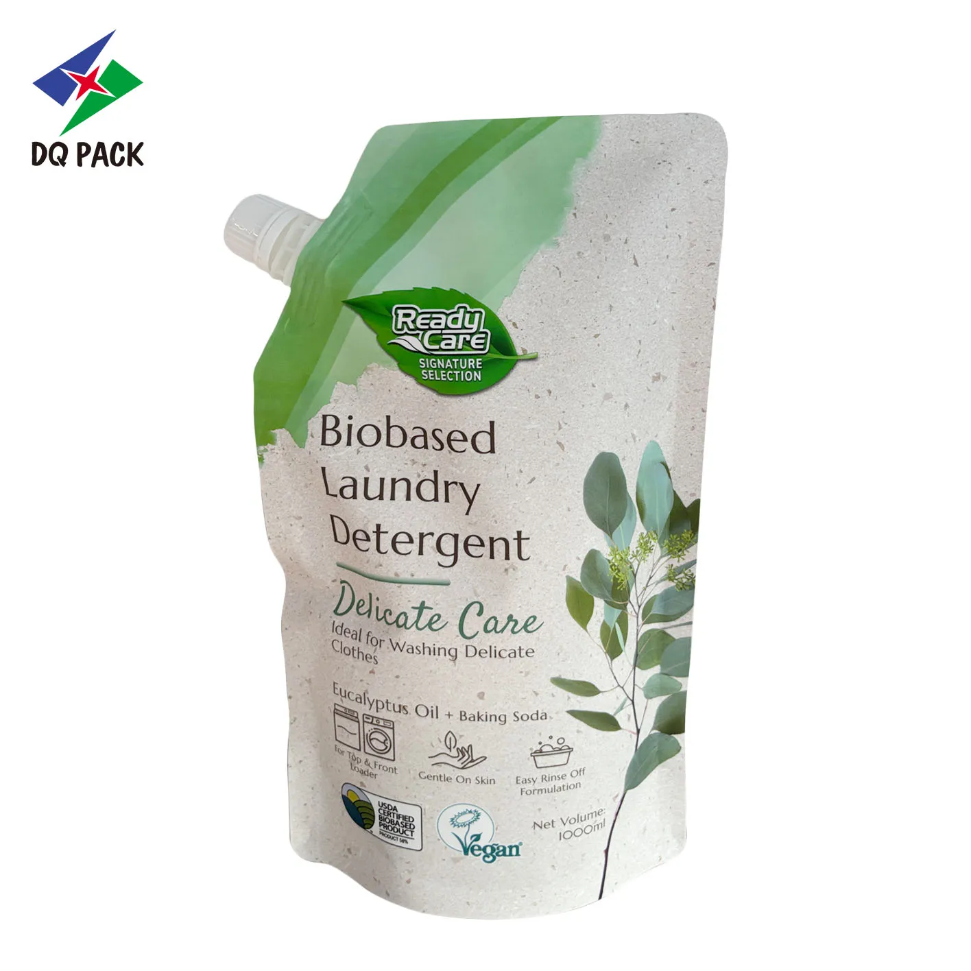 Upright and Stable Bag Body: The bottom is stable and can stand independently, simplifying storage and shelf display, making it ideal for customized laundry detergent spout pouch solutions.
