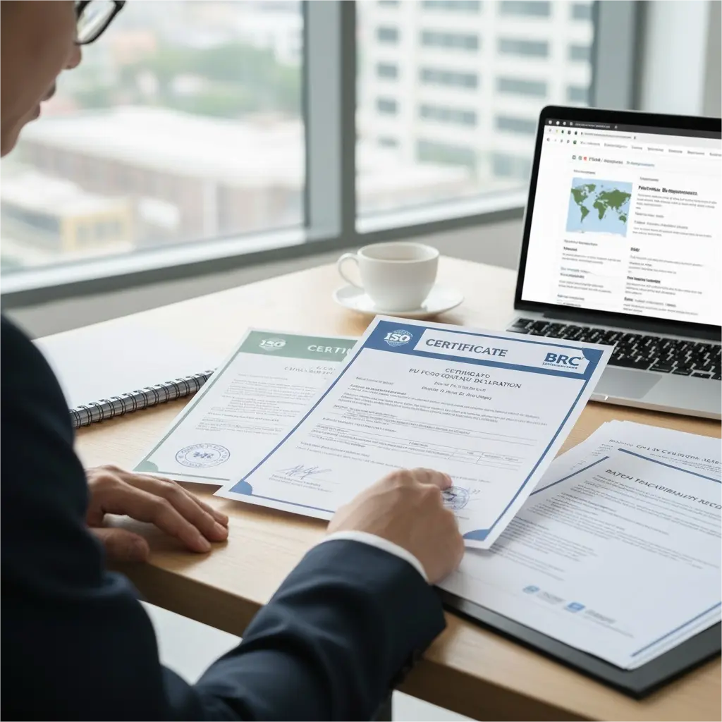 For export markets, please check if they meet the requirements of the destination country/region (such as GB standards, FSMA requirements). Do not accept vague statements – insist on requesting relevant documents.
