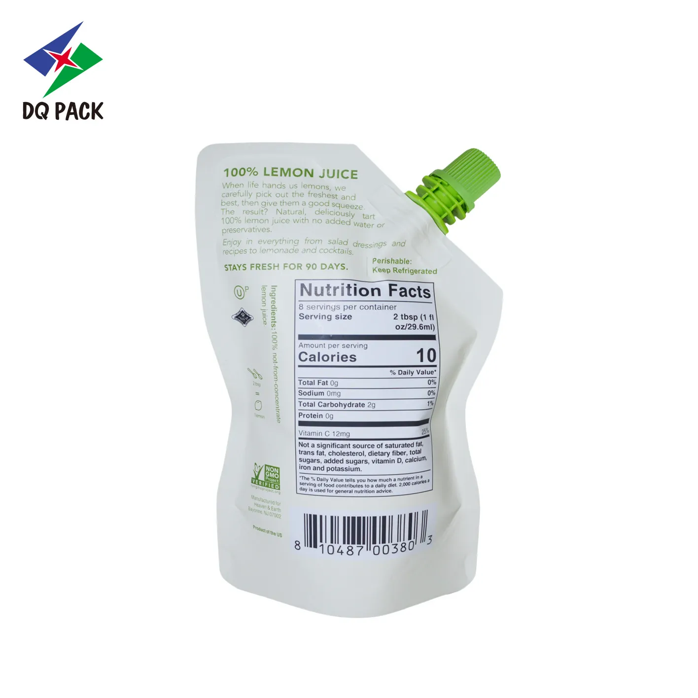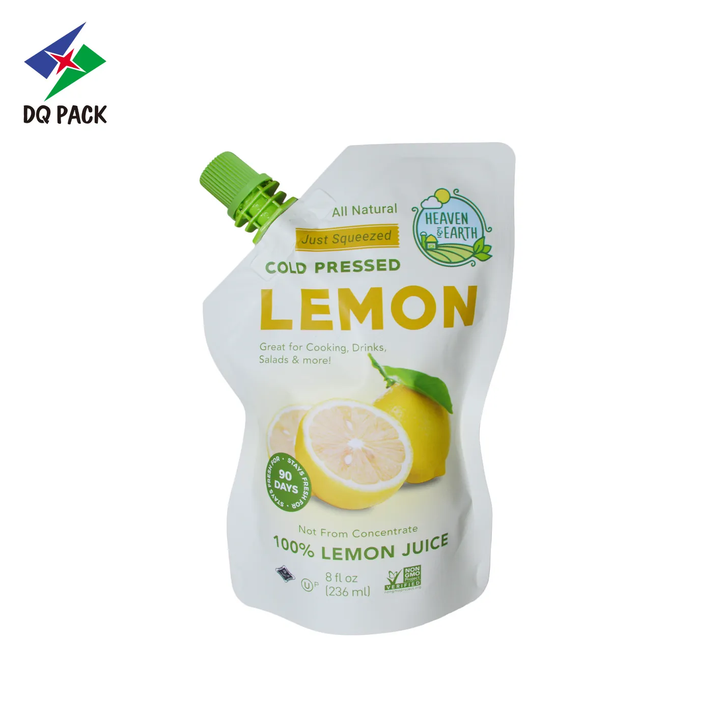 DQ PACK custom lemon juice pouches offer ultimate convenience and bold branding. Made from premium, BPA-free materials, they are leak-proof and resealable. These reusable stand up liquid refill bags feature durable leakproof design perfect for juice packaging and beverage storage. DQ PACK ensures high quality printing customization boosting your brand visibility and sustainable product appeal.